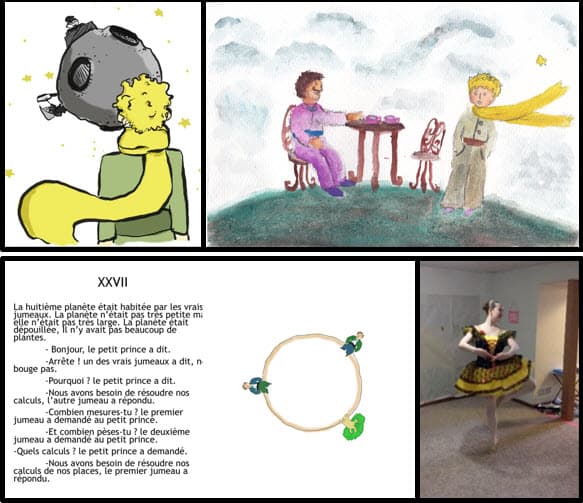 This year, Excelsior Classes piloted a French IV class for students who wanted to take the next step in language learning. The focus of French IV is written and spoken fluency rather than just grammatical fluency. Over the course of the year, we read two introductory French novels: Le Petit Nicolas and Le Petit Prince. Each semester, in addition to studying the novels, students complete a creative extension of each novel. Most recently, students completed their final projects for Le Petit Prince.
