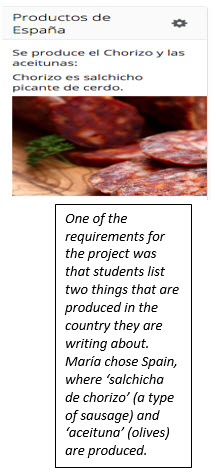 Each student chose a Spanish-speaking country and did some research on that particular country. They were graded on ten different criteria, and one of the requirements was that they needed to write their findings in Spanish. In essence, the students were using much of what they were taught during the school year to help them complete the project.