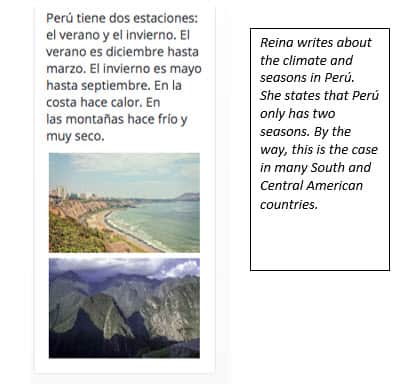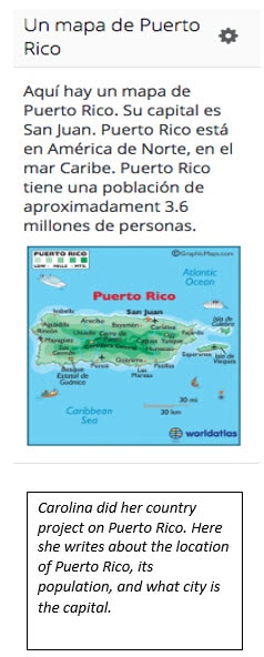 These students (Gabriela, María, Andrés, Reina, Carolina, and Carlos) demonstrated that they were able to use what they learned about grammar and vocabulary to complete their assignment.
